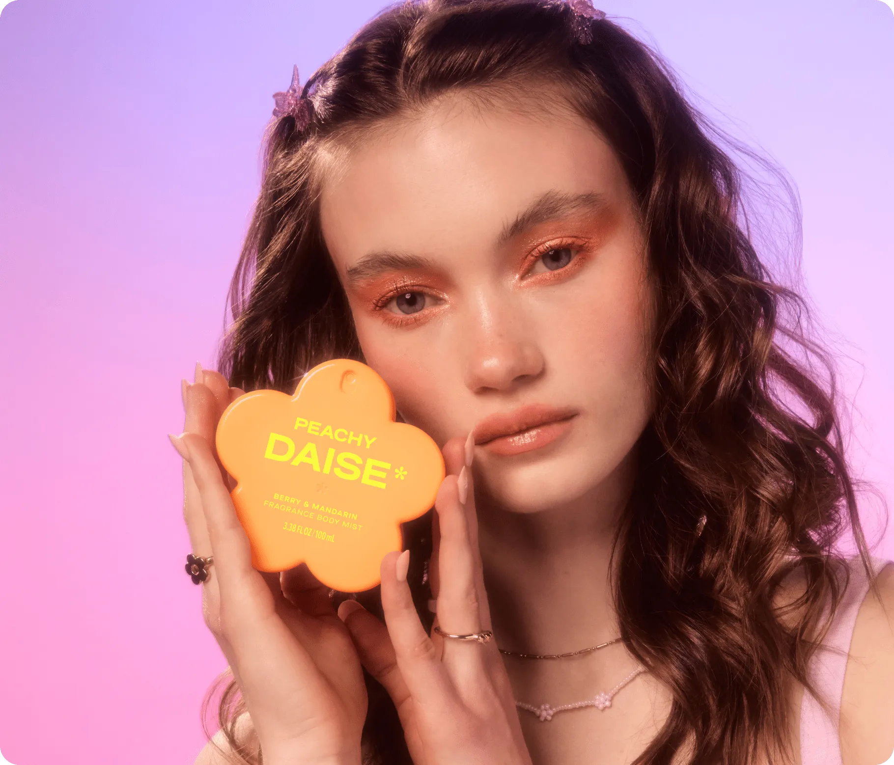 ¡Conoce tu nuevo spritz corporal y capilar! DAISE Peachy Daise Fragrance Body Mist es un aroma jugoso de bayas y mandarina que combina con el estado de ánimo que es perfecto para el cuerpo y el cabello. Peachy Daise es una jugosa mezcla de mandarina, bayas, manzana con vainilla suave, madera de cedro y un toque de almizcle, y dura hasta 24 horas.